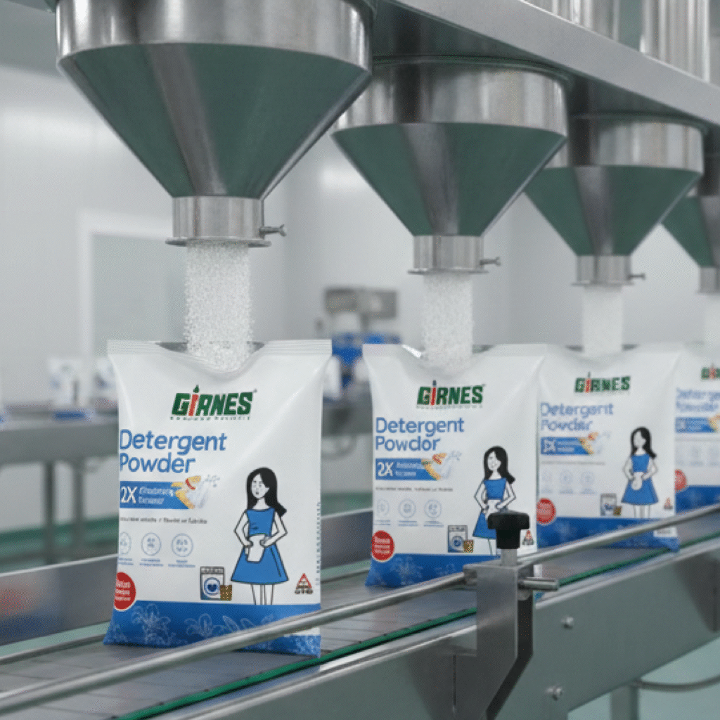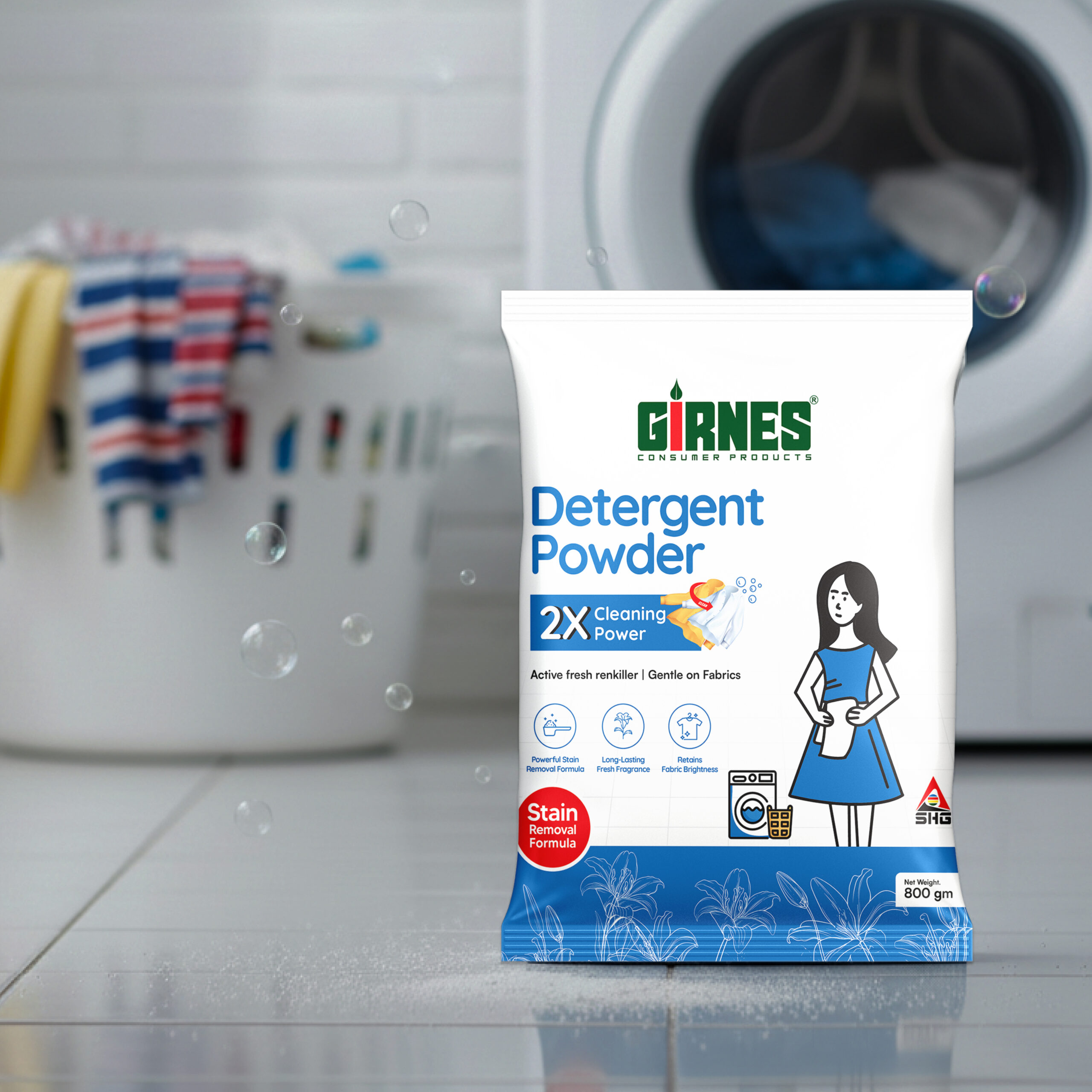 Girnes Detergent Powder is packed in moisture-proof, leak-proof pouches and bulk packaging.