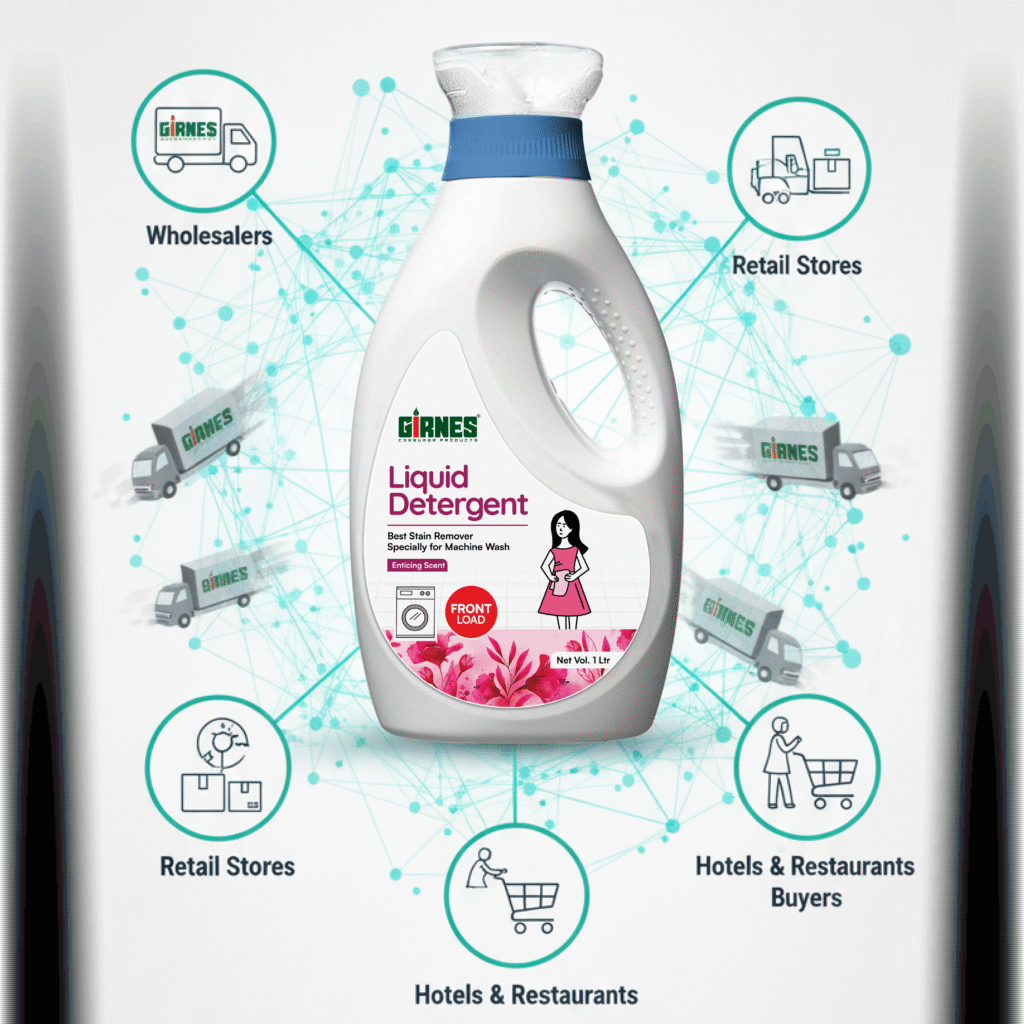 Girnes Liquid Detergent is supplied through a strong PAN-India distribution network.