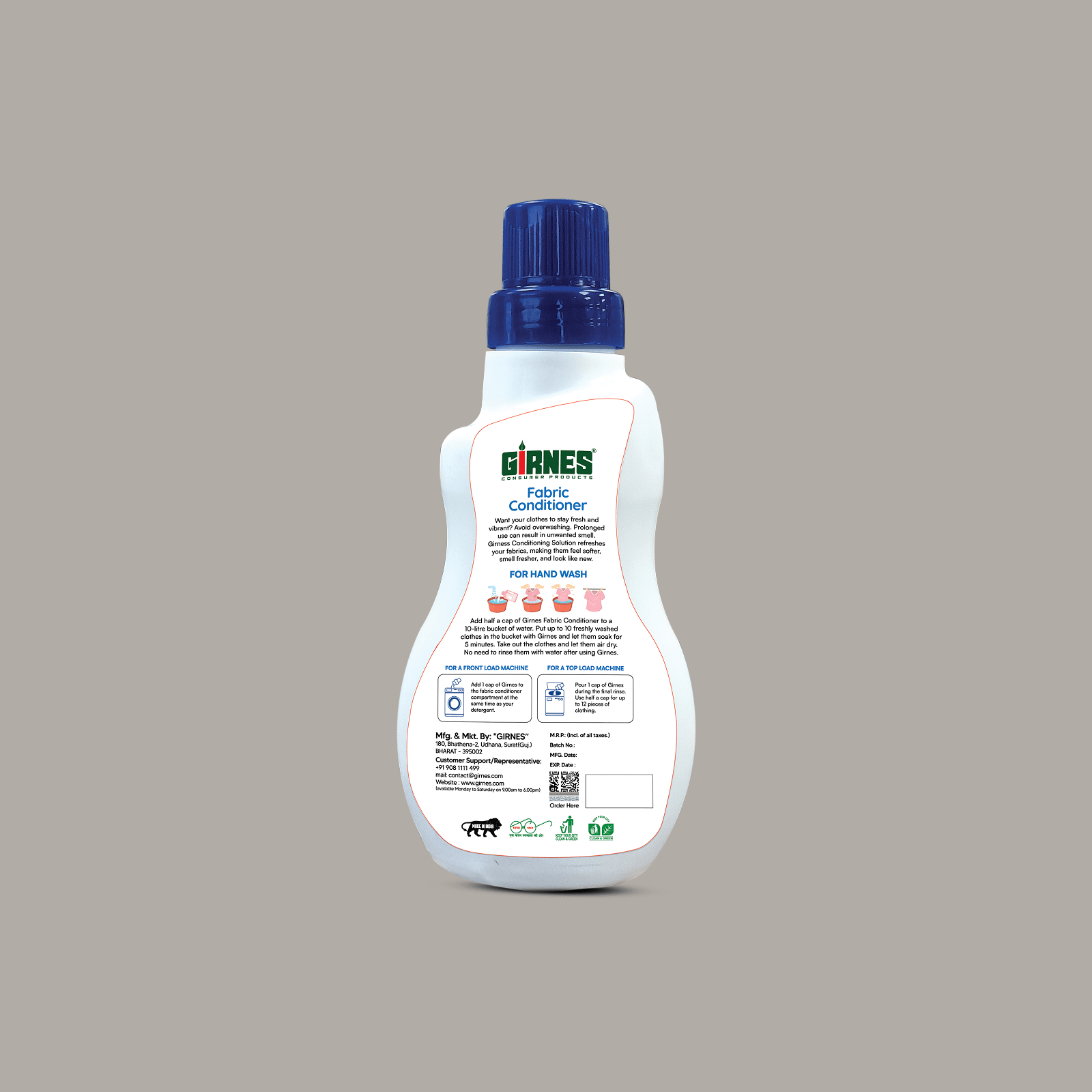 Girnes Fabric Conditioner uses biodegradable, non-toxic and fabric-safe ingredients, ensuring: